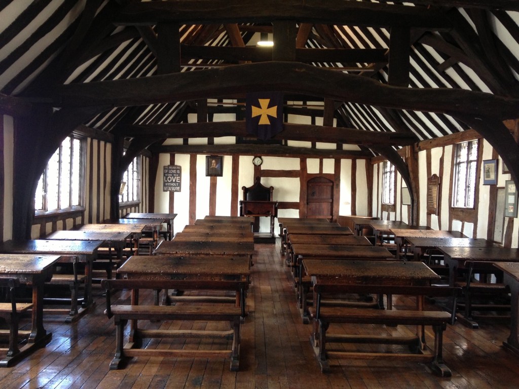 Show the class a photo of Shakespeare’s classroom at King Edward VI School in Stratford-upon-Avon. (Here is one I took in 2013.) You may like to discuss some of the features of the classroom. It’s not clear in this photo but these desks have names and graffiti carved into the soft wood, the mark of students over many years. In Shakespeare’s time it’s thought that the arrangement would have instead be two benches along the side walls, facing one another.